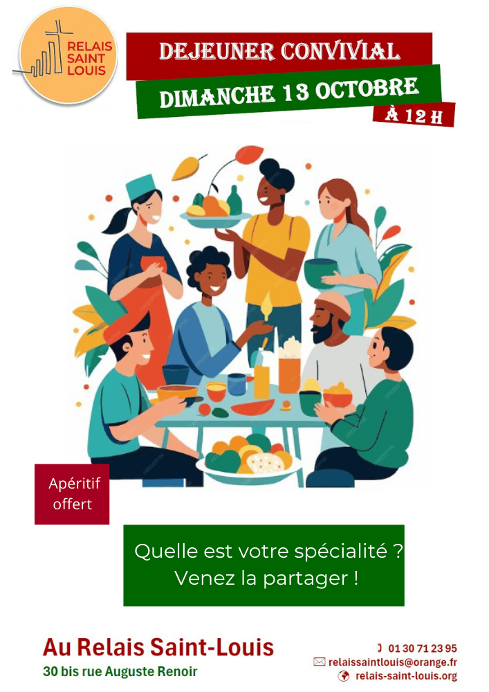 Le prochain déjeuner convival aura lieu le 13 octobre 2024 à partir de 12h30.